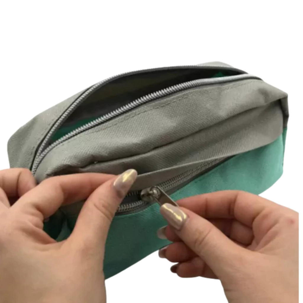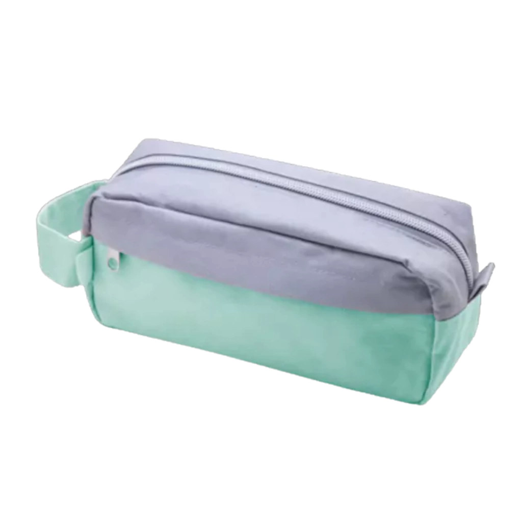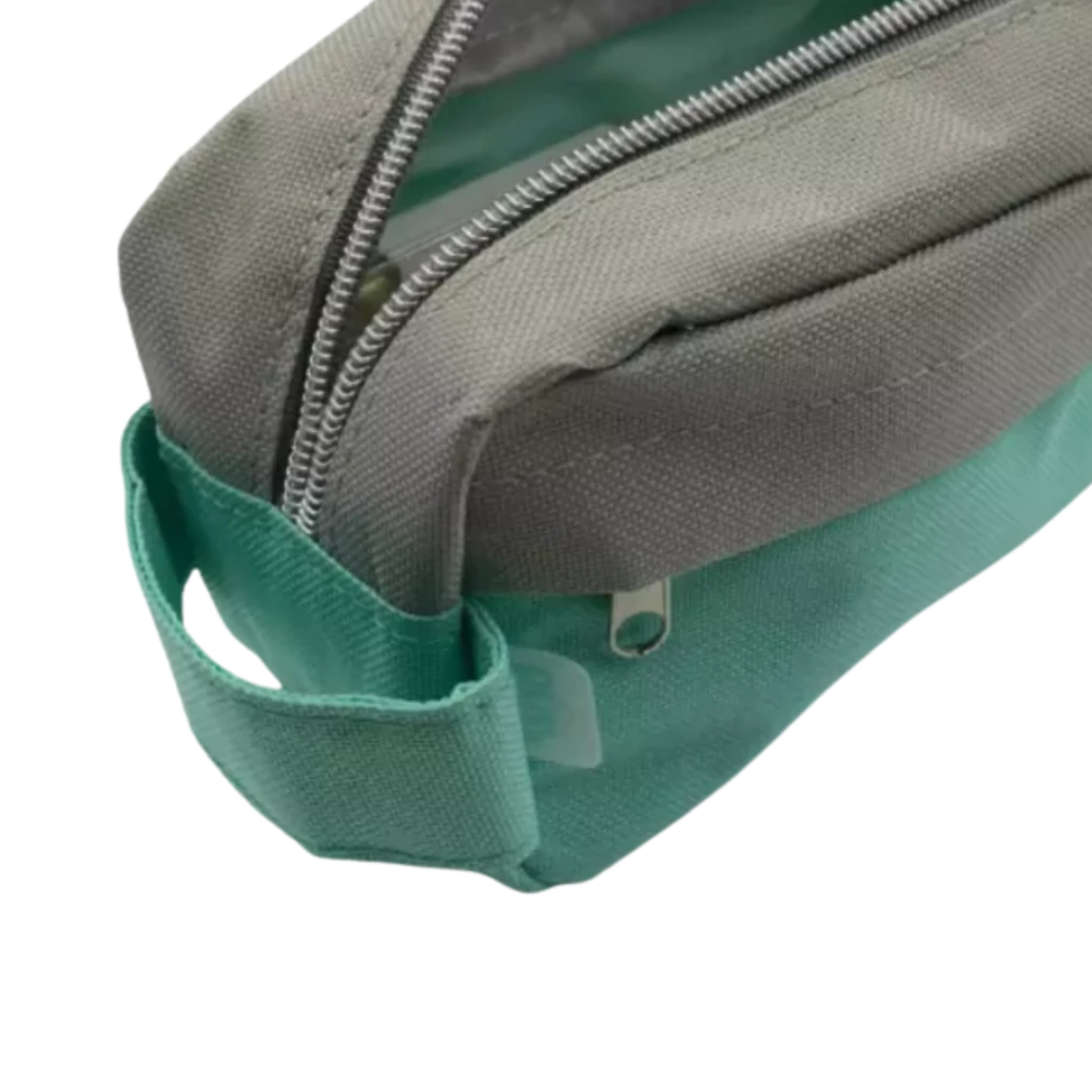 Cartuchera/Neceser 2 cierres Combinacion gris y aqua pastel