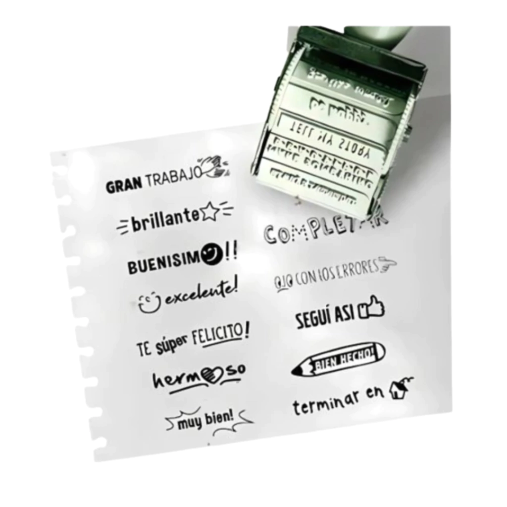 Modo de uso: Giras, elegis el motivo, apoyas sobre la almohadilla, sellas y listo!!!